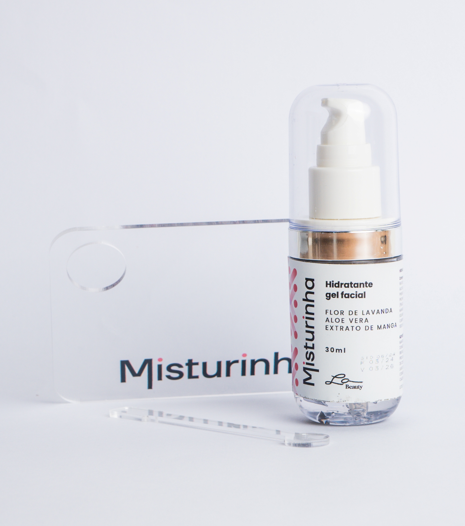 Sobre a Misturinha: A misturinha é um hidratante facial em gel que serve para tratar a pele, quando utilizado diariamente como hidratante facial, e também para misturar com a sua base e ter uma textura mais leve e duradoura da sua maquiagem. Com ativos e propriedades naturais, a misturinha contribui para manter uma cutis mais jovem e elástica, protege a pele pelos danos causados pela luz do sol, previne o ressecamento e rugas da pele, elimina a oleosidade e, consequentemente, previne contra a acne.Quando utilizada misturada com a sua base, a misturinha protege a sua pele dos danos causados pela maquiagem, controla a oleosidade e o efeito de pele brilhosa e ainda mantém uma maquiagem com mais duração.